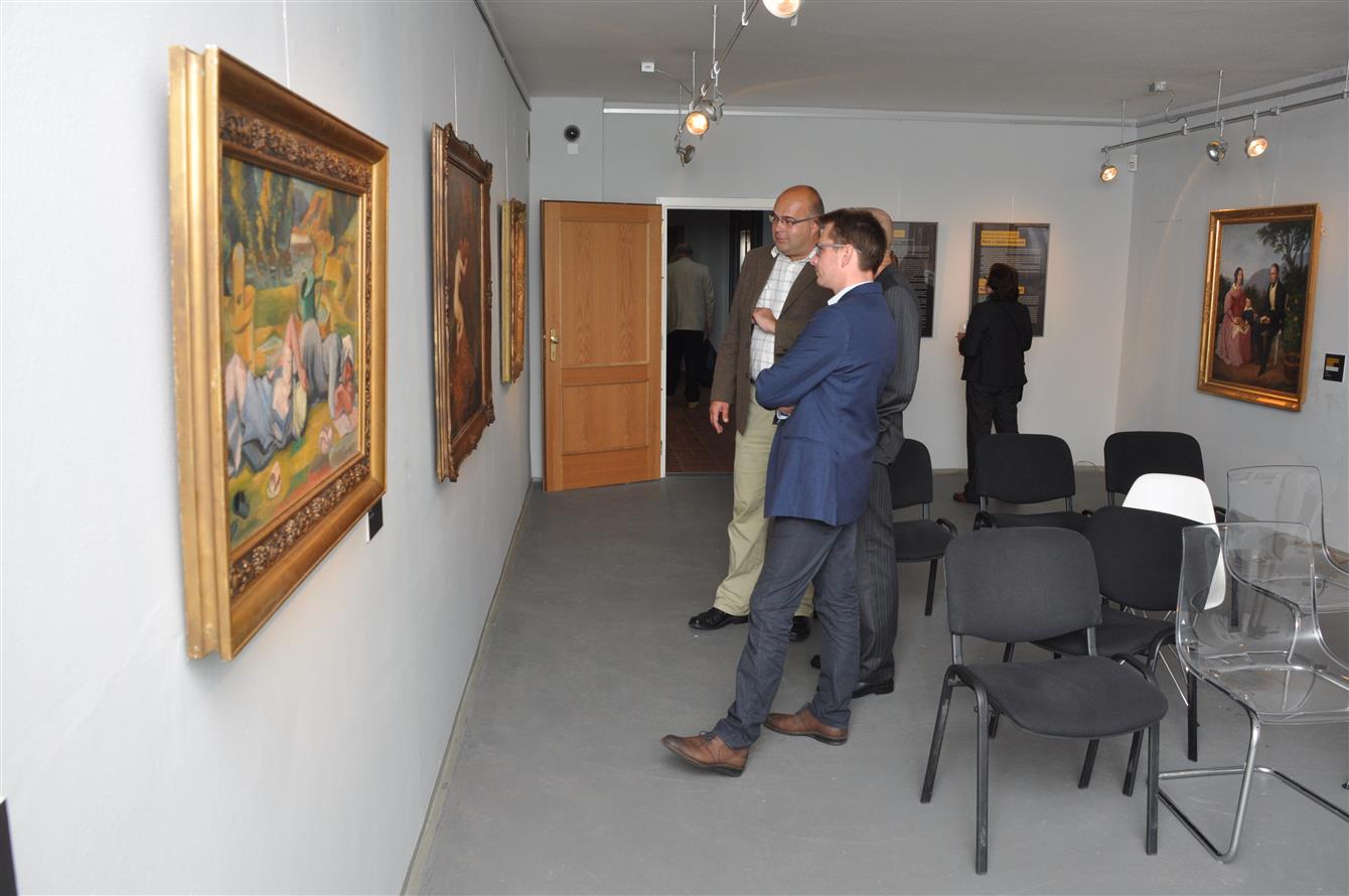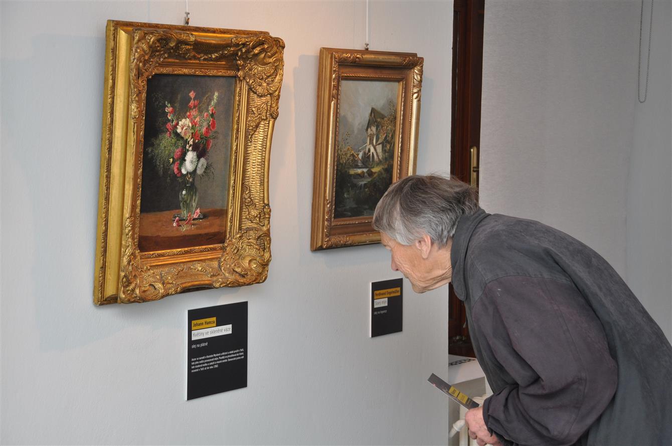Návštěvníci mohou vidět např. obraz Jacoba Alta „Pohled na zámek Dačice“ z roku 1837, který zachycuje budovu zámku po jeho přestavbě s původní barvou omítky, jeho nejbližší okolí i reálie ze života. Dílo bylo zakoupeno ze sbírky rodiny von Purgstall ze zahraničí. Dále dva akvarely jeho syna, proslulého malíře Rudolfa von Alta, které zachycují výzdobu a vzhled interiérů hradu Rožmberk v polovině 19. století. I tato díla byla zakoupena zpět do České republiky ze zahraničí. Kresba Friedricha von Amerlinga „Sedící zamyšlený kardinál“, z majetku židovské rodiny, byla předmětem vynuceného prodeje do sbírek Albertiny ve Vídni v roce 1938, restituentům pak byla navrácena teprve v roce 2002.